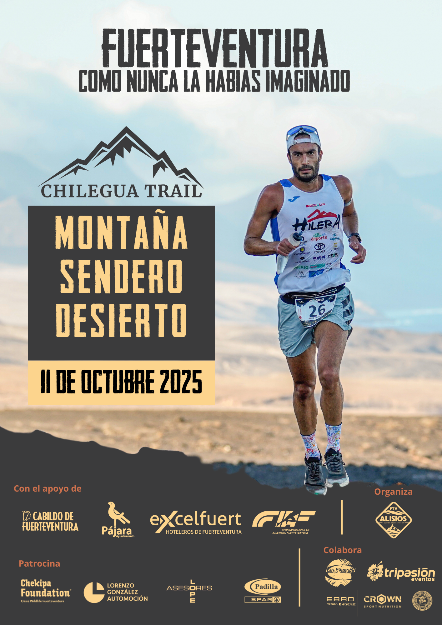 Todos los Eventos CHILEGUA TRAIL octubre 11 @ 08:30 - 16:00 Navegación del Evento « TRAVESÍA ALEJANDRO CANDELA Cronovilla Aguas de Teror » Detalles Fecha: octubre 11 Hora: 08:30 - 16:00 Categoría del Evento: Trail o Carrera por montaña Web: https://chileguatrail.com/ Local Pájara Organizador ALISIOS GESTIÓN SOCIODEPORTIVA S.L. Teléfono 928547116 Correo electrónico info@alisiostraining.com Ver la web del Organizador Añadir al calendario Google Calendar iCalendar Outlook 365 Outlook Live Previous TRAVESÍA ALEJANDRO CANDELA Next Cronovilla Aguas de Teror